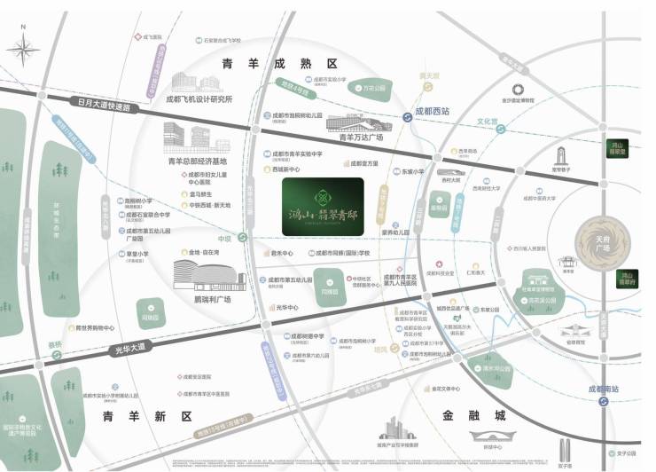 三纵三横路网与三条地铁线交汇:日月大道、光华大道、三环路构建便捷交通体系;地铁4号线号线(在建)组成立体交通网络,实现商务与生活的轻松切换。