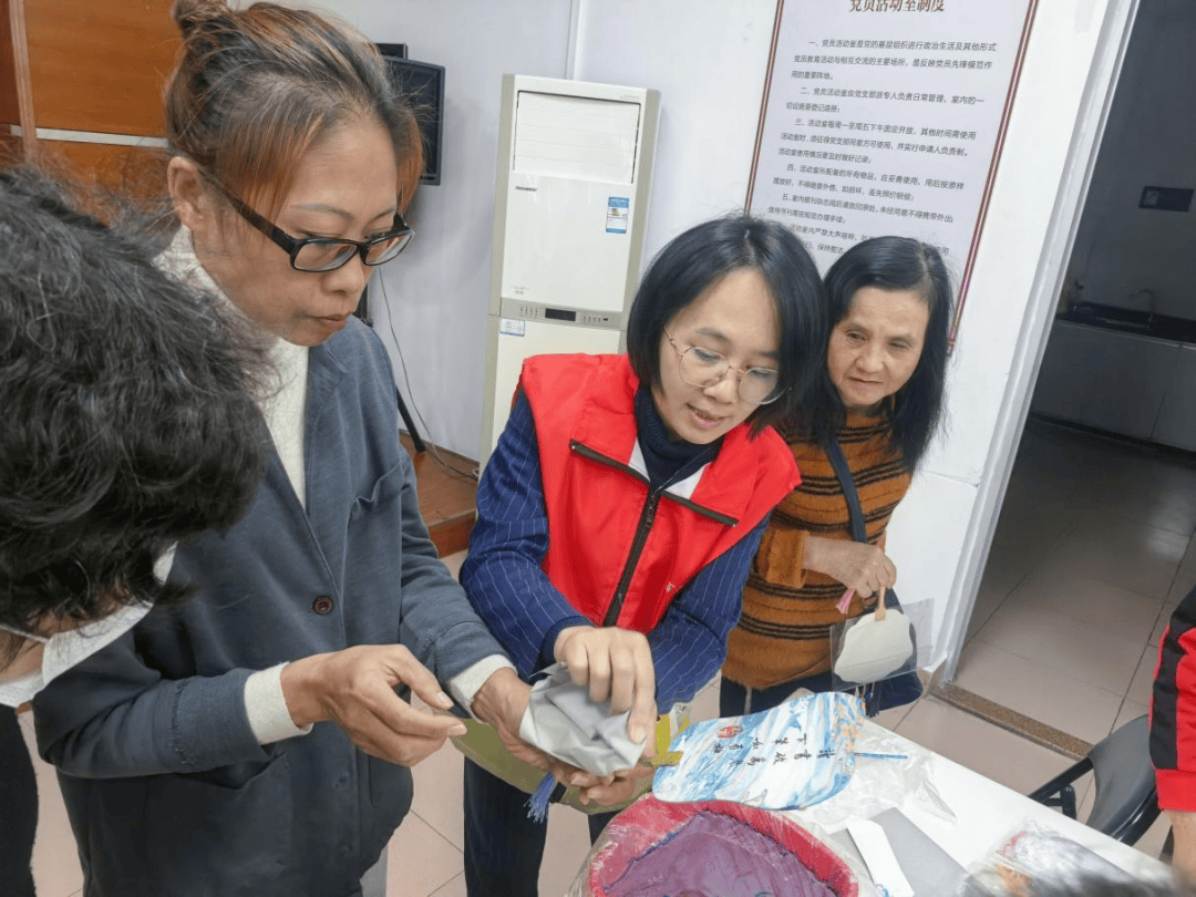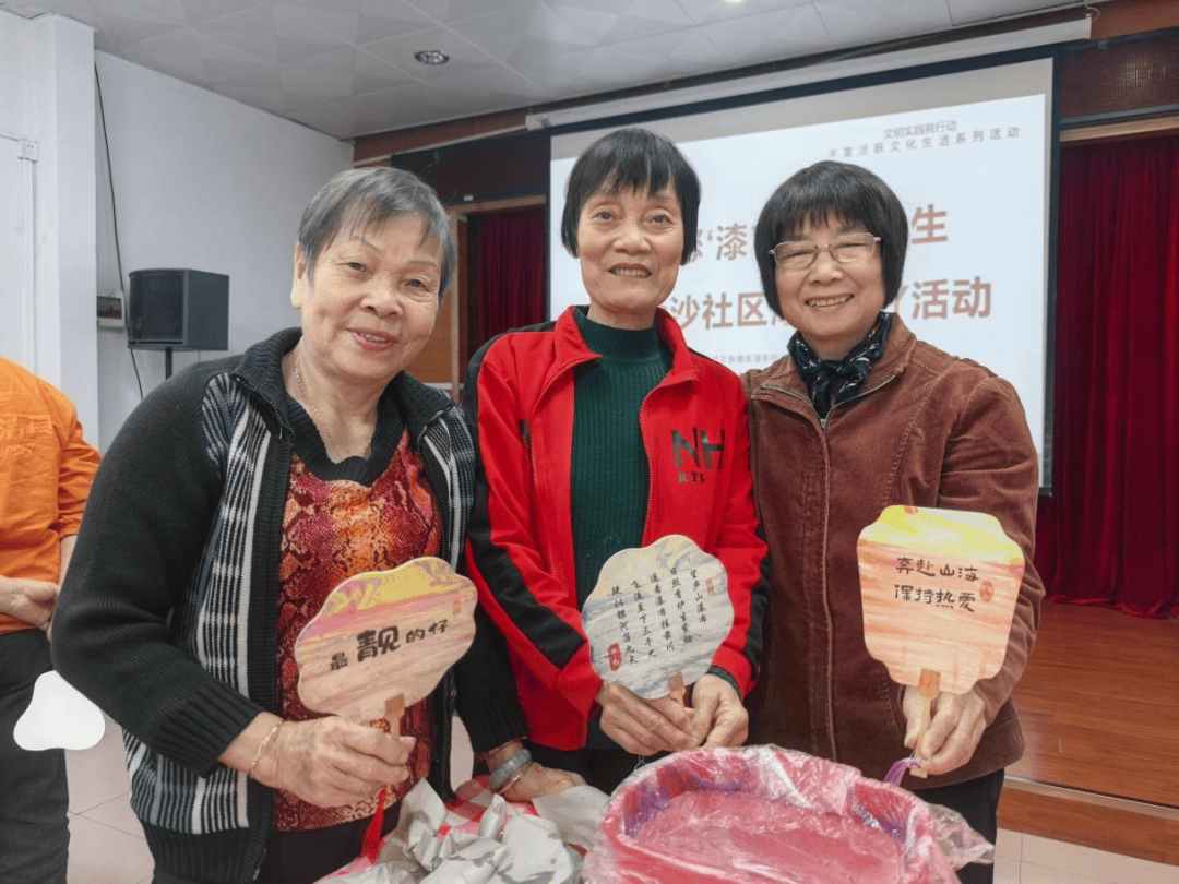 “漆扇的天然大漆材料具有抗菌特性,这与我们倡导的健康理念不谋而合。”活动现场,高老师手持漆扇介绍道。区别于传统技艺展示,本次活动将健康科普巧妙融入每个环节:有奖问答环节设置“膳食平衡”“养老服务”等题目;漆扇制作前,讲师特别讲解大漆的天然防腐特性;成品展示环节,居民们手持扇面讨论“如何通过传统工艺改善现代家居环境”。