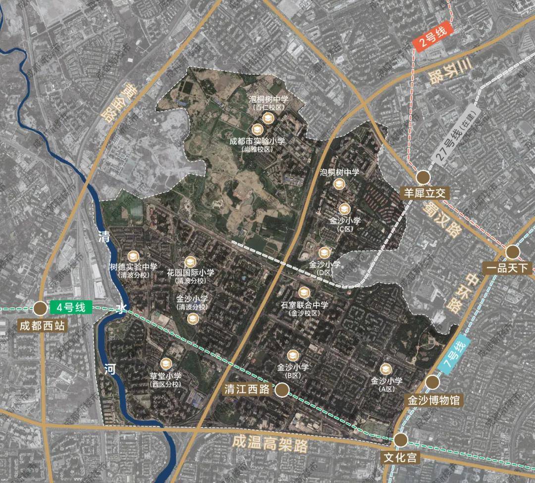 ✅教育配套:成都第六幼儿园、实验小学附属幼儿园金沙小学、泡桐树中学、石室联中、青羊实验中学