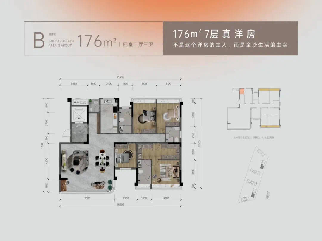 青羊内金沙·低密·青五7层洋 全新首开一批次149㎡、176㎡ 1栋21层2T2户:149㎡ 2栋7层2T2户:176㎡