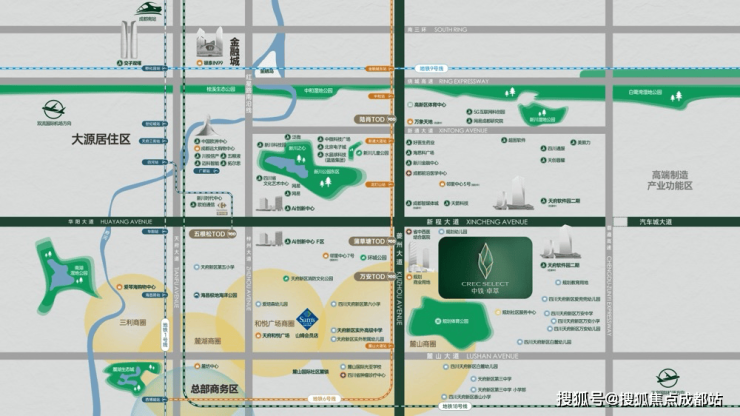 新川南板块作为城南双核重要组成部分,占据双轴交汇战略位置。北接高新区金融城、大源板块成熟配套,南承天府中央法务区、总部商务区发展规划,形成南北联动、产城融合的独特区位优势。
