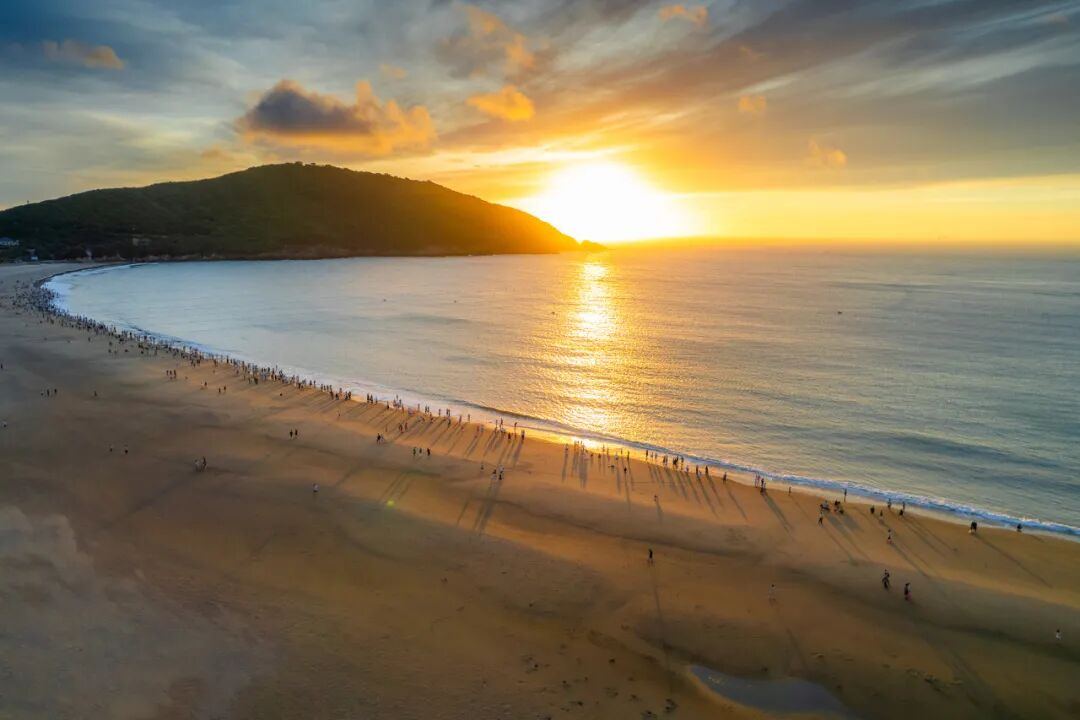 东沙沙滩呈弦月形,滩前海面宽阔,海水清澈,岸坡平缓,是踏浪、玩沙好去处。