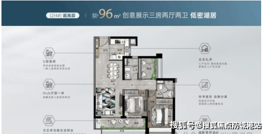 超高层96㎡三房户型:该户型性价比极高,布局合理,空间利用率高。全南向设计,采光通风良好,客厅连接观景阳台,可欣赏社区园林与城市景观;主卧空间充足,配备飘窗,次卧布局方正,适合刚需家庭居住。超高层视野开阔,无遮挡,可俯瞰金沙洲板块全貌,享受独特的居住体验。