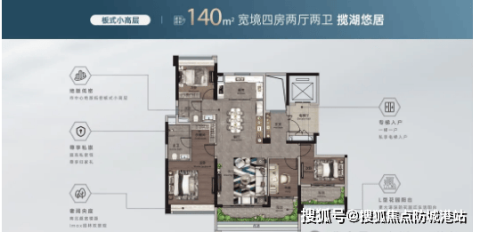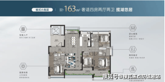 小高层160㎡绝版改善板式大四房:作为项目高端改善户型,该户型在空间尺度与居住体验上全面升级。纯板式设计搭配全南向朝向,保证室内每一个空间都能获得充足采光与通风;客厅与餐厅采用横厅设计,空间开阔通透,搭配全景落地窗,将湖山生态景观引入室内,提升居住质感。主卧套间配备步入式衣帽间、独立卫浴与观景飘窗,尊享私密奢华体验;其余卧室均为大尺寸设计,可灵活改造为儿童房、老人房、书房或健身室,满足全生命周期居住需求。