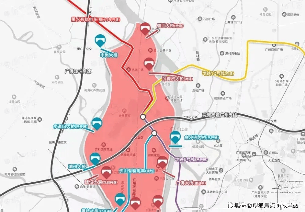 公路交通方面,金沙洲大桥经过改造后通行能力显著提升,而备受关注的广佛大桥目前施工进度已过半,计划按节点竣工通车,大桥设置专属非机动车道,通车后可快速直达荔湾大坦沙,进一步完善区域交通格局。此外,规划中的沉香大桥已进入环评和鹭鸟生态监测阶段,未来建成后将为金沙洲新增一条跨江通道,进一步缓解区域交通压力,让业主出行更加便捷。