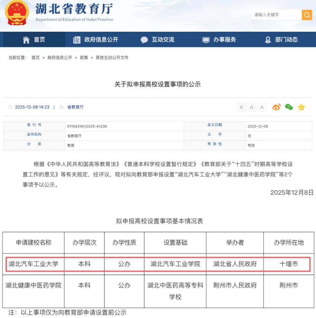 公开信息显示,湖北汽车工业学院位于湖北省十堰市,是全国唯一一所以汽车命名的全日制普通本科院校,历史上曾是原机械工业部直属高校。